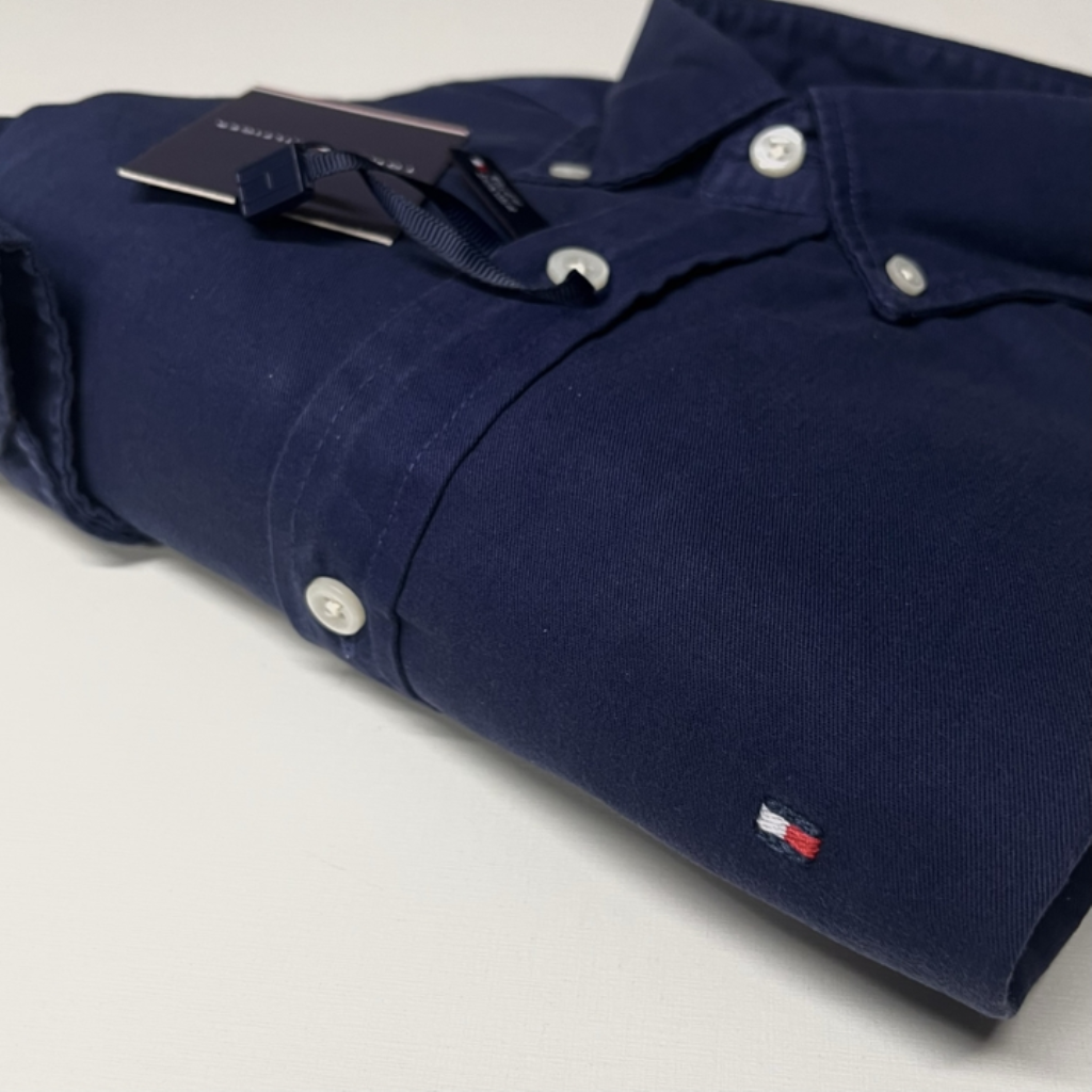 CAMISA SOCIAL TOMMY HILFIGER TINTURADA AZUL MARINHO